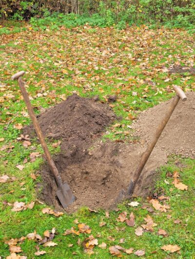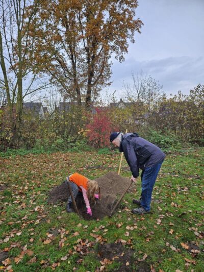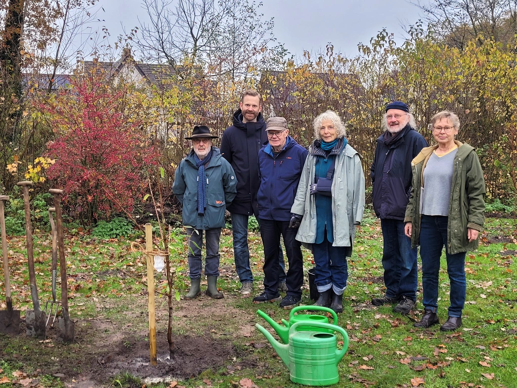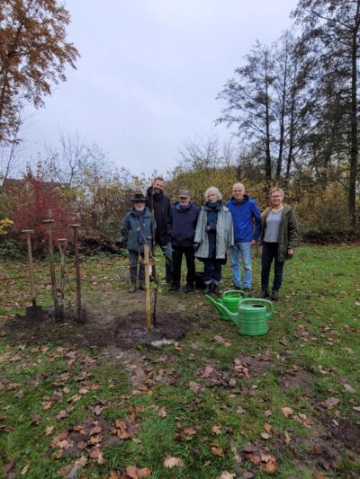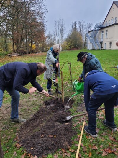 Auf dem Gelände des Bispinghofes pflanzten Mitglieder unseres Ortsverbandes Mitte November in Abstimmung mit der Bürgerstiftung Bispinghof ein Mandelbäumchen. In generationenübergreifender Zusammenarbeit wurde zunächst an geeigneter Stelle ein Loch ausgehoben. Nach sorgfältiger Anreicherung des Bodes mit Kompost, Terra Preta und weiterem Dünger konnte das Stämmchen gesetzt werden.